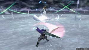 Three sword swipes with a chase or a wall rush ender. Press circle ddff-icon-button-circle.png before the third swipe for a wall rush ender or press circle ddff-icon-button-circle.png after it for a chase ender. Garland's movement can be controlled freely during the first two swipes, but it does not make it safe to use.